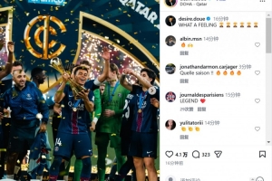 在社交媒體上,巴黎圣日耳曼邊鋒杜埃曬出捧杯照進(jìn)行慶祝,他寫道:多么美妙的感覺!