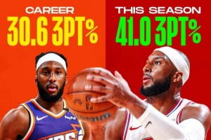 努力終得回報(bào)。對手再也不能對他視而不見,這手提升后的跳投技術(shù),結(jié)合他標(biāo)志性的能量與防守,正釋放出更大的價(jià)值。