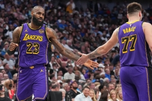 詹姆斯出戰(zhàn)的比賽,東契奇場(chǎng)均36.2分8.3板9.6助攻,真實(shí)命中率61%,勝率77.8%(7勝2負(fù));
