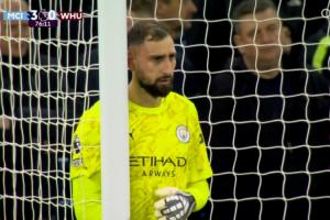 比賽第77分鐘,曼城門將多納魯馬用臉擋出了薩默維爾近距離的打門,隨后在防守定位球時(shí)特寫給到多納魯馬,他的面部明顯出現(xiàn)了被球擊中的印記。