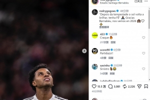 羅德里戈賽后社媒寫道:“‘風(fēng)雨過后,陽光總會重現(xiàn),保持信念????’感謝伯納烏,2026年再見?!?/p>