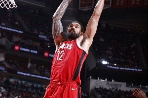 此役,亞當斯替補出戰(zhàn)25分14秒,投籃4中0,罰球2中1,得到1分12籃板,包括5個進攻籃板。