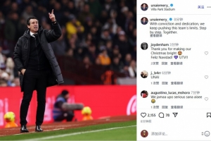 體育資訊12月22日訊 今天凌晨,維拉在英超主場(chǎng)2-1擊敗曼聯(lián),球隊(duì)主帥埃梅里賽后在Instagram發(fā)文慶祝勝利。