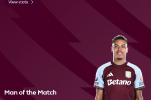 此役羅杰斯梅開二度,幫助維拉取勝,英超官方宣布,他當(dāng)選本場(chǎng)比賽最佳球員。