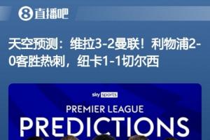 體育資訊12月22日訊 英超第17輪再賽一場(chǎng),維拉2-1擊敗曼聯(lián),英國天空體育本輪預(yù)測(cè)繼續(xù)命中!