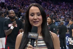 GIF-女記者接受采訪 杰夫·格林在后面比比劃劃搶鏡