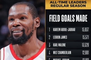 本場比賽,杜蘭特生涯運動戰(zhàn)進(jìn)球數(shù)超過奧拉朱旺(10749),升至歷史第10位。