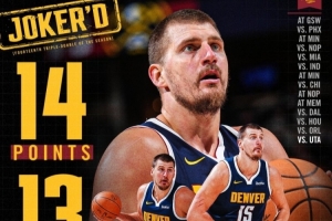 恐怖如斯!約基奇本賽季場(chǎng)均得分第3 助攻&籃板第1 兩雙&三雙第1