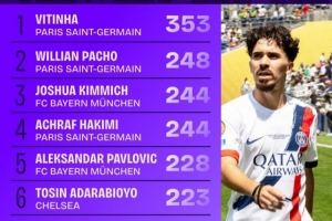 1.維蒂尼亞(巴黎圣日耳曼):353次