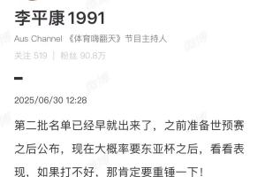 媒體人李平康透露,足壇掃黑第二批名單早就出來了,之前準(zhǔn)備世預(yù)賽之后公布,現(xiàn)在大概率要東亞杯之后,看看表現(xiàn),如果打不好,那肯定要重錘一下! ???