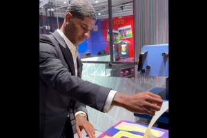 巴薩官推也曬出了拉什福德在亮相儀式上自己動(dòng)手,為巴薩球衣印上14號(hào)的過程。